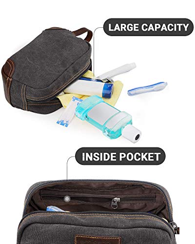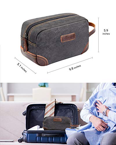 CONVENIENT MULTI-USE BAG: Whether you are travelling for business or personal reasons, this canvas and leather toiletry bag will certainly meet your needs. It was designed for both women and men, and is an extremely versatile wash bag that can be used as a traditional toiletry bag or shaving kit bag, a protected place to store your healthcare items at the same time as traveling, or it may be used as a carry-on airline bag to store needed in-flight toiletries.