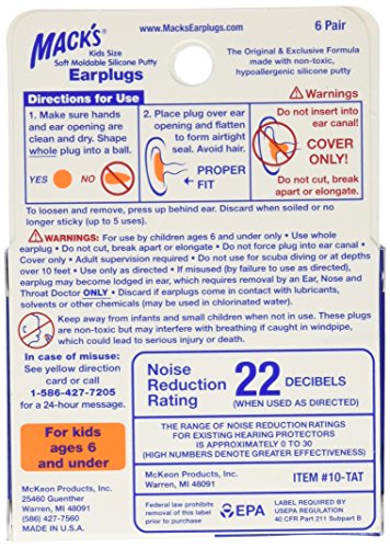 America’s #1-selling kids size moldable silicone ear plugs. Larger and more secure than other kid’s size earplugs, providing a greater seal and accommodating all kids ear sizes. Macks Soft Silicone Earplugs mold comfortably to the original contours of any ear. Seals out water (is helping save you swimmer??s ear) and reduces noise. Noise reduction rating – 22 decibels. The colour is fun for kids and easy for parents to look. Swimming, bathing, loud events, studying, flying discomfort, and so on. Case incl. (6 pair)