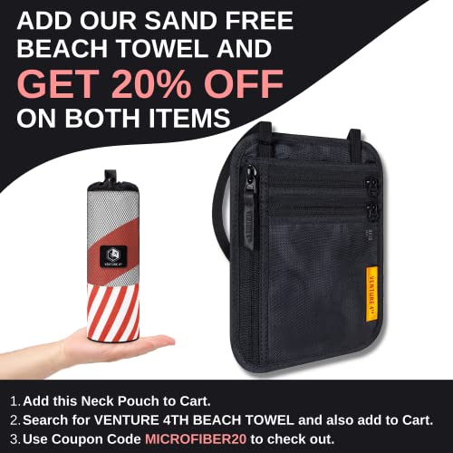 ✅ FLEXIBLE STORAGE FOR MAXIMUM COMFORT – Designed with 3 smart storage compartments the VENTURE 4TH neck pouch comes with breathable backing and YKK zippered pockets. This Trip Wallet includes a Soft and Adjustable Neck Strap in addition to two Loops to wear the Pouch on your Belt.
