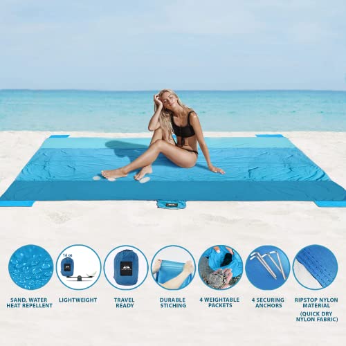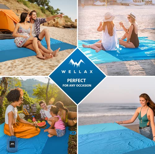 QUICK DRY NYLON FABRIC: Made from strong, durable and breathable 100% Parachute nylon, the WellaX sand free beach blanket will last for years of use. Water repellent, anti-heat material makes it perfect for any occasion if it is camping, hiking, a picnic day, a music festival experience or simply travelling! Comes with 4 securing anchors.