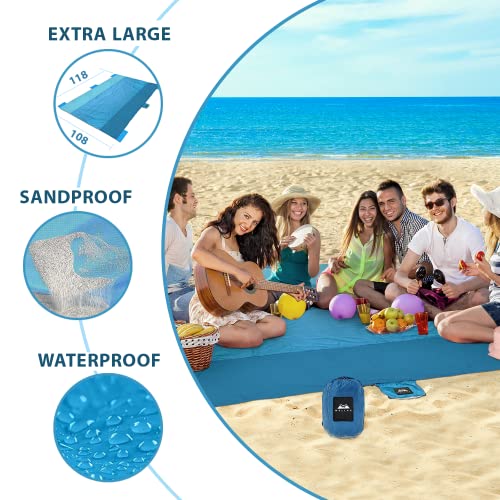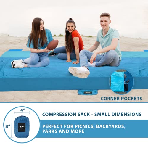 OVERSIZED BUT COMPACT: At 118″ x 108″ all your family or friends can take advantage and chill on this amazingly soft and HUGE sand free beach mat! The most efficient part: it compresses to 4” x 8” and only weighs 16 oz. The integrated sack makes it so EASY to store this sand proof blanket for beach and carry around!