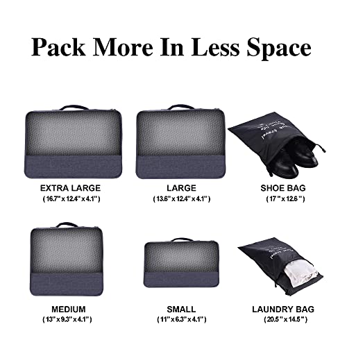 EASY &UNRIVALLED ORGANIZATION. Our mesh design allows for visibility of inside contents as well as good ventilation, protect privacy and avoid unnecessary embarrassment all over security check. See-through go back and forth cubes help locate your belongings effortlessly. These pro packing cubes reduce wrinkles or mess. 4.1 inch deep luggage cubes can condense items and save extra 50% space. Fit your entire packing needs and maximize using space for other go back and forth essentials.